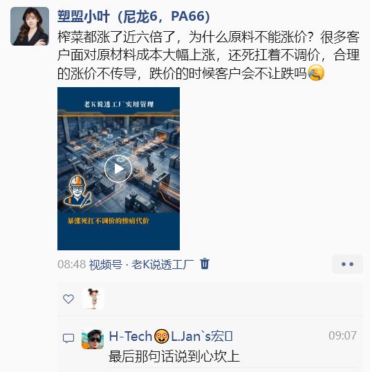 原材料疯狂涨价,成本压力已到极限! 2026年一季度,化工原料市场迎来一场史诗级暴涨。33种涂料原料全部上涨,平均涨幅超过55%,多数品种涨幅在35%120%之间。其中: 暴涨品种(涨幅超100%):偏苯三酸酐(TMA)从年初1.3万元/吨一路冲至4.3万元/吨历史峰值,最大涨幅超220%,厂商密集调价,现货一货难求;进口丙二醇涨189.7%,丁酮涨120.5%,乙二醇单丁醚涨103.6%。 大涨品种(50%-100%):丙烯酸丁酯、MIBK、国产丙二醇、异丙醇、纯苯等十几种原料涨幅均超50%。 稳健上涨品种(10%-50%):环氧树脂、钛白粉、乳液等全线跟涨。 为什么涨得这么猛? 四个原因叠加:原油及烯烃强势上行,带动整个链条涨价;多家工厂检修,供应收紧;下游开工回暖,需求集中释放;进口货源紧缺,叠加海运和汇率因素,价格直接翻倍。 下游企业首当其冲:塑料行业已进入强成本驱动阶段 以橡塑板块为例,2026年3月监测的18种商品中,17种环比上涨,涨幅全部超过5%。涨幅前三:ABS涨43.0%,PP(纤维)涨42.9%,PP(拉丝)涨38.8%。 成本在疯涨,但很多下游客户却说:价格提不上去。 死扛不涨价,真的是明智之举吗? 很多人相信薄利多销降价就能多卖,多卖就能赚钱。但真实数据告诉我们:企业提价带来的销量损失,往往远低于提价带来的收益;而降价,反而很难提高盈利。 换个角度想:一包榨菜都涨了近六倍,为什么你的原料就不能合理涨价? 面对原材料成本大幅上涨,如果还死扛着不调价,等于自己默默吞下所有损失。更现实的问题是:涨价的时候你不传导给客户,等到原料跌价了,客户会主动要求你少降价吗?显然不会。 合理的涨价,不是伤害客户,而是保护整个供应链的健康。二季度即将到来,涨价传导恐怕已经成为行业不得不走的主旋律。 (P.S. 以上内容,仅为个人观点,不代表任何机构立场,也不具备权威性。文章不构成任何投资推荐,所有分析仅供参考。市场有风险,决策需谨慎。)