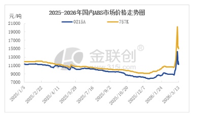导语:3月第二个交易周,中东局势持续影响市场,ABS市场也上演了极端行情,令买盘纷纷退市观望。 见证历史 暴涨暴跌极限拉扯 数据来源:金联创 3月第二个交易周,暴涨暴跌极端行情显现,周一见证了历史单日最大涨幅,周二见证了历史单日最大跌幅,令部分ABS厂家及贸易商纷纷封盘,买盘退市观望,新单成交大幅缩减。 3月第一周的周末,美以伊冲突升级导致中东地区多国原油供应和海运运输中断,市场担忧情绪升温提振原油盘中一度暴涨,纯苯、苯乙烯期货持续涨停,现货市场直线拉升,周一ABS石化厂家大幅拉涨,高端料出厂报盘跳涨至两万以上,多数商家封盘观望,零星报盘疯狂上扬,市场涨幅高达3000元/吨之上,国产中低端料价格冲至14000元/吨之上。 然特朗普在新闻发布会上表示,美国对伊朗的军事行动会很快结束,紧随而来的就是周二原料大跌,ABS石化厂家大幅回调,市场获利盘冲击,拖累ABS商谈重心暴跌,个别料获利盘一度跌至11000元/吨之下。尽管周三原油收盘、周四早间苯乙烯再度强势拉涨,个别ABS厂家随之调涨,市场低价盘明显减少,价格有所上行;然周四午后苯乙烯再度大幅回落,令ABS市场重新回归弱势,亦令商家操盘逐步趋于理性。 经历过极端后ABS如何演绎? 地缘政治在美国的参与下不确定性极高。如果伊朗战争在3月份结束,那么国际油价将重新回归至战争爆发前的水平,即WTI主流运行区间63-70美元/桶,布伦特主流运行区间68-75美元/桶。如果伊朗战争长期持续,那么国际油价恐进一步上冲至100美元/桶,甚至更高。 中东局势的不确定性,令大宗市场前景较为迷茫。不过回归到ABS市场基本面,目前除去个别装置计划内检修外,其余ABS装置多保持稳定生产;而元宵节已过,下游需求逐步复苏,需求存在增量。考虑到春节前后市场价格波动大,节后石化、市场多有累库,大量获利盘仍需消化,由此来看,3月中后期ABS市场价格仍将表现较为混乱;然待获利盘逐步消化,ABS市场或于4月份逐步回归正常轨道,考虑到持货成本的抬升,供需面相对平衡,价格存向好预期;即便中东局势存在变数,ABS市场亦或相对理性的涨跌,短线极端暴涨暴跌行情暂不会再现。