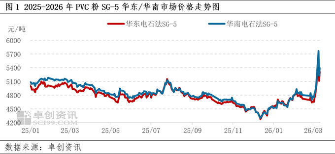 【导语】中东局势紧张,本周部分乙烯法PVC粉行业开工有所下降,且后续乙烯法企业因缺少原料而降负荷的预期增强,内需逐步恢复,海外需求方采购积极性仍然较高,基本面好转且后续还有继续改善的预期,PVC期货价格上涨后宽幅震荡,价格重心整体上移较为明显。下周乙烯法生产企业原料紧张情况或难有明显改善,行业开工负荷率或进一步下降,化工品市场氛围或仍然偏好,预计下周现货市场价格重心或继续上移。 本周PVC粉市场价格上涨,据卓创资讯数据显示3月6日-3月11日国内SG-5自提均价运行区间在5062-5745元/吨,本周均价较上周上涨幅度较明显,整体价格涨幅超出上周预期。 本周PVC粉市场价格涨后宽幅震荡,主要是因为中东地缘政治影响,使得PVC粉基本面有改善预期。供应方面,本周有部分乙烯法企业因原料供应紧张而出现开工下降,且若后续原料持续紧张,多数乙烯法企业降负荷甚至停车的预期增强,供应端预期减量对市场心态支撑较为明显;需求方面,国内下游刚需陆续恢复,随行采购为主,随着海外装置部分出现降负荷及停车的情况,海外需求方采购大陆货源积极性提升,对大陆货源价格接受程度提升;成本方面,电石价格上涨,但烧碱及PVC粉价格均上行,山东烧碱及PVC粉一体化毛利明显改善,成本端支撑不明显。整体基本面有所改善且后续有进一步改善的预期,支撑PVC粉价格上涨。 下周来看,短期中东地缘政治对市场心态影响仍然较大,基本面或继续改善。预计下周PVC粉市场价格波动幅度或仍然较大,预计价格重心进一步上移。 供应端:预计下周降负荷的乙烯法PVC粉企业将增多,行业开工负荷率或继续下降,社会库存有出现拐点的可能,且市场内对供应端进一步减量的预期偏强。 需求端:国内需求逐步恢复,下游随行刚需补货为主。出口方面,海外需求方采购大陆货源积极性仍然较高,且对价格接受度明显提升,部分生产企业开始接4月份出口订单,预计出口接单或有改善。 宏观面:近期国内宏观氛围尚可,但对市场心态影响有限。中东地缘政治不确定性仍然较大,消息面对市场心态影响或仍然明显。 相关产品:下周电石价格或窄幅上行,烧碱价格有上涨预期,山东烧碱及PVC粉一体化毛利或延续相对可观的状态,成本端支撑难体现。 市场内对供应端减量的预期较强,基本面或进一步改善,消息面或对市场心态扰动仍然明显。综合来看,预计下周PVC粉市场价格宽幅震荡,价格重心或较本周继续上移,但需关注中东地缘政治变化及乙烯法装置开工情况。