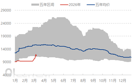 1 、今日摘要 ①、本周EVA石化出厂价继续上调。 ②、本周EVA石化装置:虹景PV2线装置开车,古雷石化大修停车,燕山石化3套EVA装置久停;其他装置均稳定生产。 表1 国内EVA价格汇总表(单位:元/吨) 市场 牌号 3 月24 日 3 月25日 涨跌值 涨跌幅 厦门 古雷USI-629 13200 12800 -400 -3.03% 厦门 虹景6020M 12700 12500 -200 -1.57% 厦门 扬巴5110J 14100 13600 -500 -3.55% 江苏 扬巴5110J 14200 13500 -700 -4.93% 江苏 虹景6020M 12800 12500 -300 -2.34% 福建 光伏28-25 12500 12500 0 0% 数据来源: 隆众资讯 今日国内EVA市场报盘有所回调, 油价波动影响市场心态, 石化供应端保持挺价,但下游对高价货源抵触,现货成交以获利盘为主,实盘一单一谈。主流价格:软料参考12400-13600元/吨,硬料参考12300-13600元/吨。 图1 国内EVA价格走势图(元/吨) 图2 国内EVA分种类价格走势图(元/吨) 数据来源:隆众资讯 数据来源:隆众资讯 3 、生产动态 国内EVA石化装置:中化泉州产高压;江苏斯尔邦装置管式产光伏V2825,釜式产UE28150;江苏虹景PV1线20万吨/年装置产涂覆V1815;PV2线20万吨/年装置产光伏;PV3线20万吨/年装置产光伏V2825;宁夏宝丰产硬料1803C;延长榆林产2825Y;天利高新产光伏;浙江石化1号线产光伏,2号线产发泡;古雷石化3.8日停车大修至4.20日;燕山3套EVA装置均停车。 另外,华南市场主要软料价格12500-13600元/吨,国内EVA行业毛利水平在-500元/吨附近。 图3 国内EVA产能利用率趋势图 图4 国内EVA利润与价格对比图(元/吨) 数据来源:隆众资讯 数据来源:隆众资讯 4 、价格预测 短期来看,中东地缘冲突带来的 原油 供应担忧,将会持续影响市场成本端走势,EVA上游原料保持高位整理,EVA生产商出厂机制或坚挺为主,下游被动跟随接盘,总体来看,短期受成本面上涨的影响,预计近期国内EVA市场偏强震荡为主。 5 、相关产品情况 1)乙烯: 3月24日CFR东北亚1450美元/吨稳,CFR东南亚1450美元/吨稳。 中石化化销华东分公司乙烯报价平稳至10200元/吨,金山联贸乙烯报价同步至10200元/吨。 2)醋酸乙烯: 华东市场非电石法醋酸乙烯主流商谈8800 -10500元/吨,电石法主流商谈8800元/吨,场内报盘延续高端,用户刚需询盘,实单成交清淡。 6 、数据日历 表2 国内EVA数据一览表(单位:万吨) 数据 发布日期 数据 本期趋势预计 EVA 产能利用率 周四16:00PM 81.41% EVA 周度产量 周四16:00PM 6.5 数据来源:隆众资讯 备注: 1、视为大幅波动,突出涨跌幅超过3%的数据维度。 2、↗↘视为窄幅波动,突出涨跌幅在0-3%以内的数据。